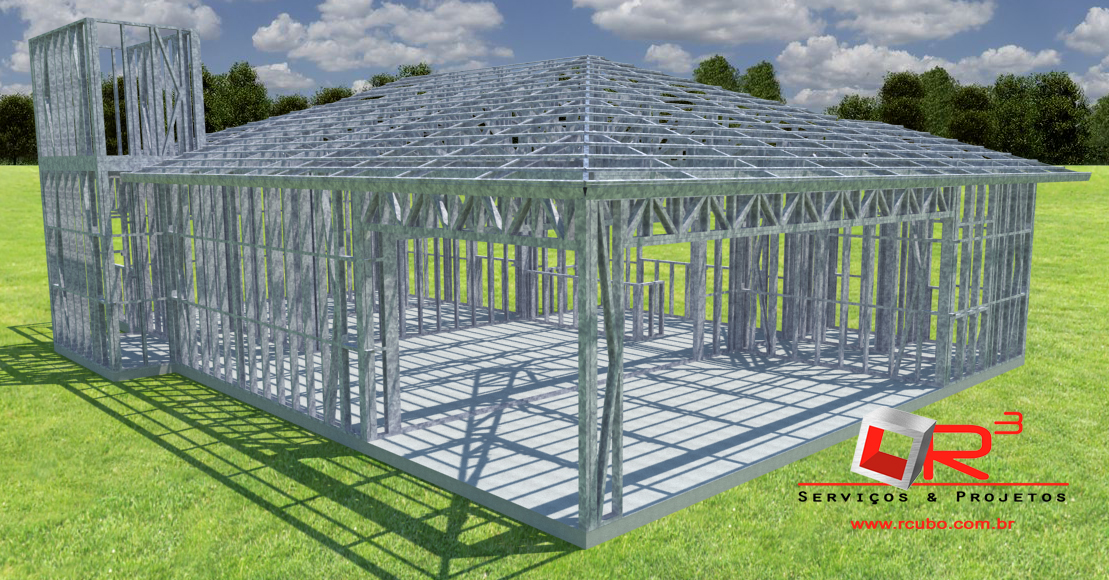 Projeto estrutural de residência em light steel framing. A R³ Serviços & Projetos realizou o projeto de estrutura em 3D e projeto executivo, a obra será realizada pela empresa Zárya.